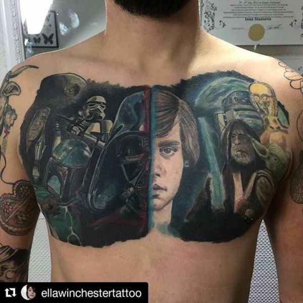 花胸纹身--一组男性霸气的大花胸纹身图案作品欣赏