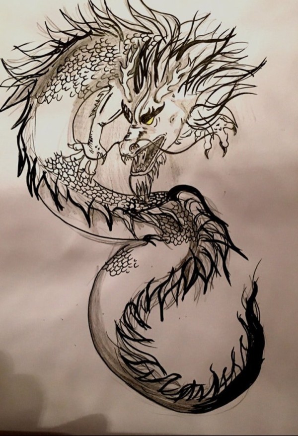 龙纹身手稿_一组老传统黑灰龙手稿纹身图案