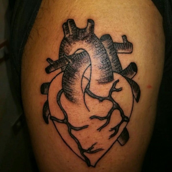 心脏纹身图案 男生手臂上心脏纹身黑色图案
