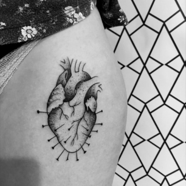 心脏纹身图案 黑色色调的心脏纹身图案