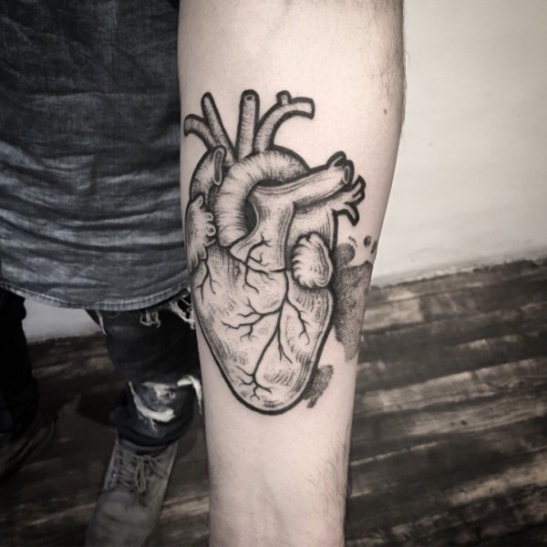 心脏纹身图案 男生手臂上心脏纹身黑色图案