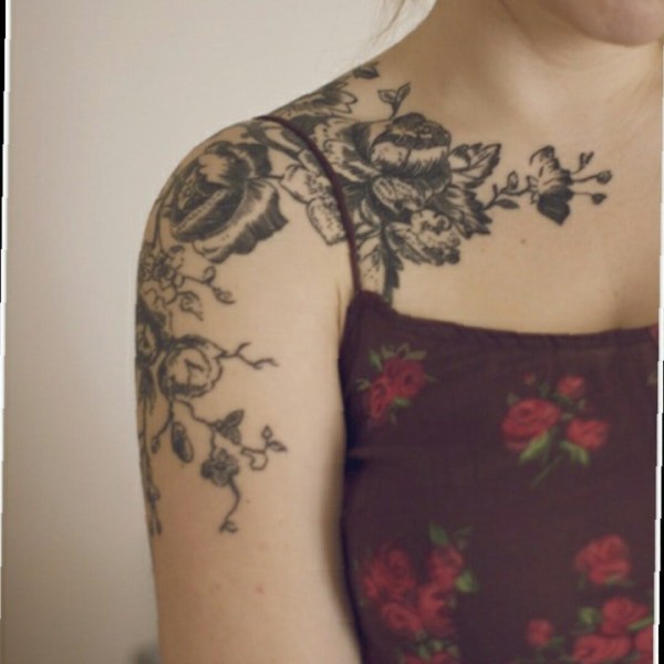 蔓延的藤蔓和怒放的花朵纹身