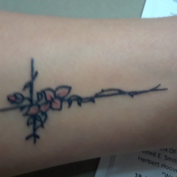 女性侧肋上漂亮的弯月形状藤蔓小花纹身图片