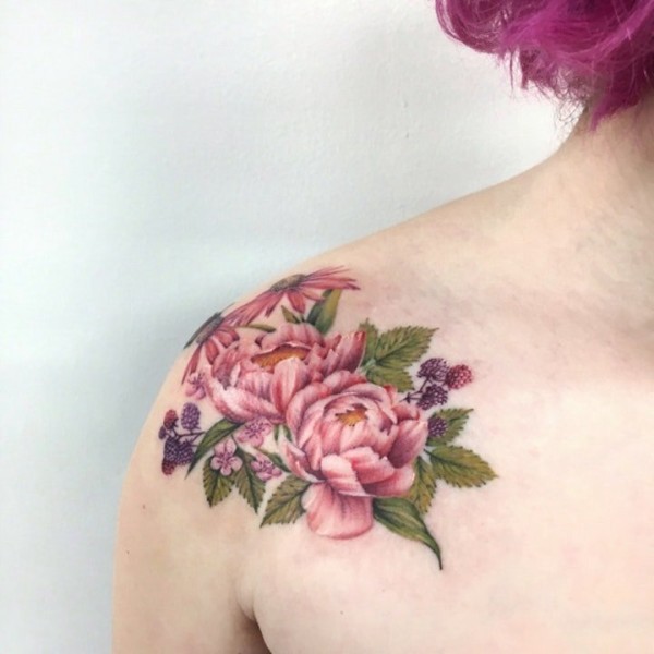 漂亮女生胸部漂亮的花卉藤蔓纹身图图片