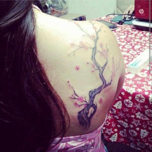 女背部纹身图 漂亮唯美的女生背部纹身图案