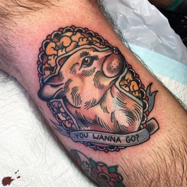 大腿纹身图女 女生大腿上彩色的小狗纹身图片