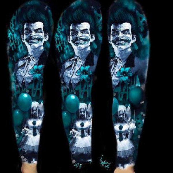 一套欧美动画片角色写实黑灰手臂纹身作品