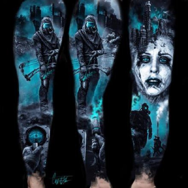 一套欧美动画片角色写实黑灰手臂纹身作品