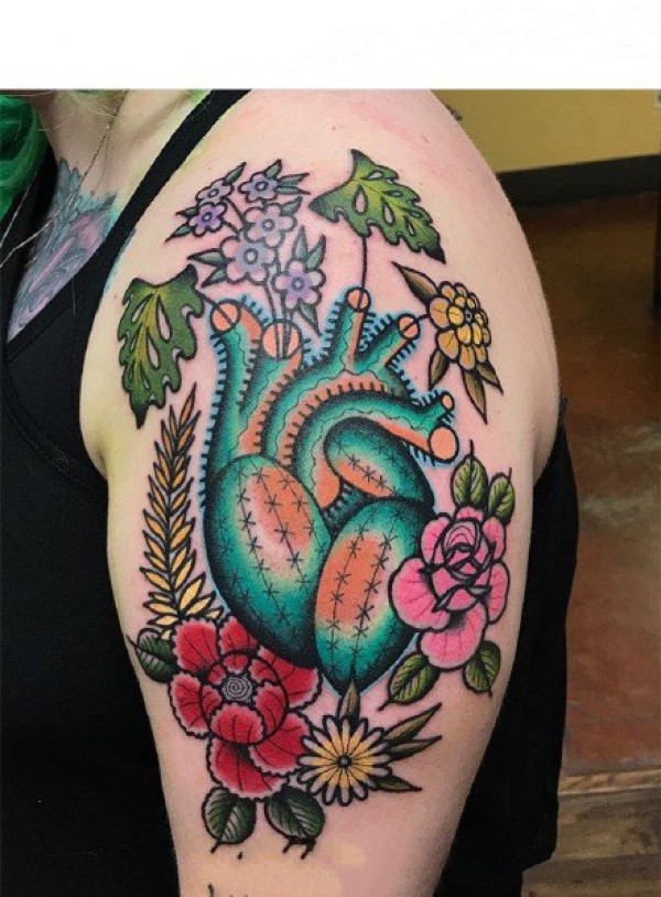大臂大腿上的彩色school纹身图片