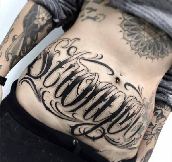 纹身花体字 9张暗黑色的漂亮花体字纹身作品图片