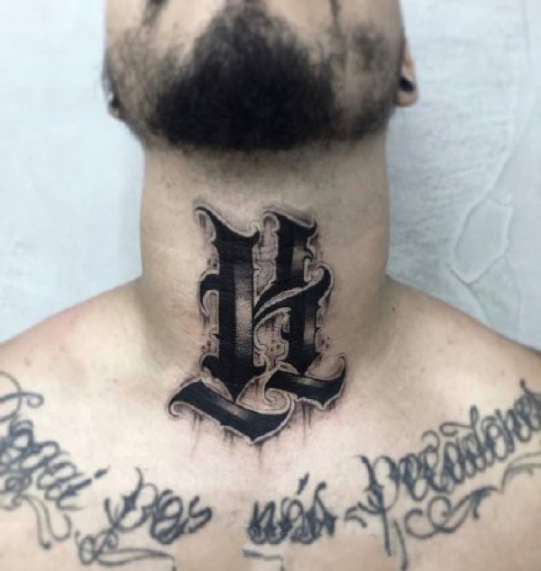 几张深黑色的奇卡诺花体字创意设计纹身图案