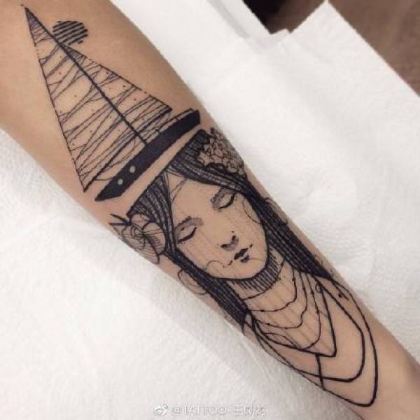 女郎纹身线图 黑灰色的9张女郎纹身线图作品