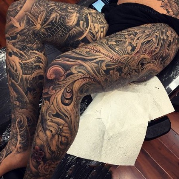 传统花腿纹身--18张传统风格的大花腿纹身图案作品