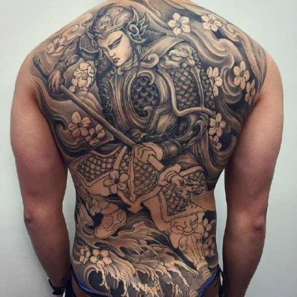 新传统风格的9张男性黑灰大满背纹身图案图片