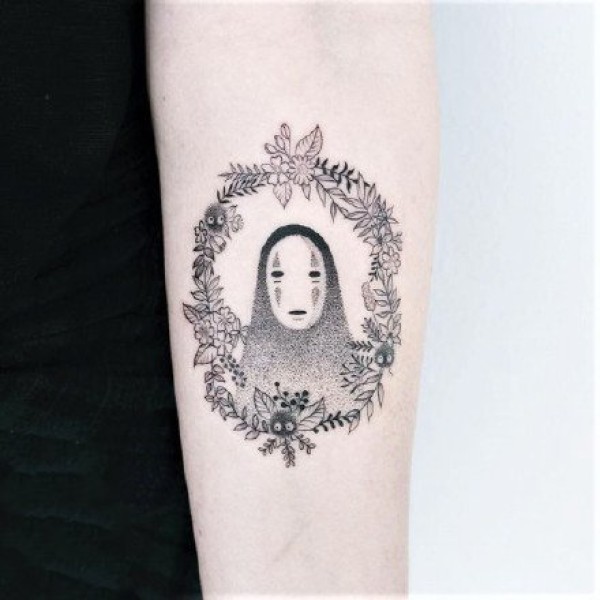 无脸男图案 神秘而又不失柔情的宫崎骏动漫无脸男纹身图案