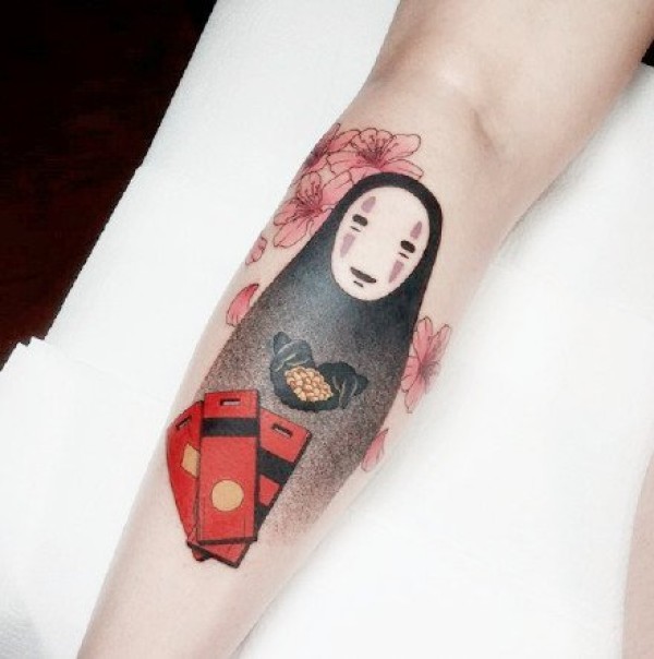 无脸男图案 神秘而又不失柔情的宫崎骏动漫无脸男纹身图案