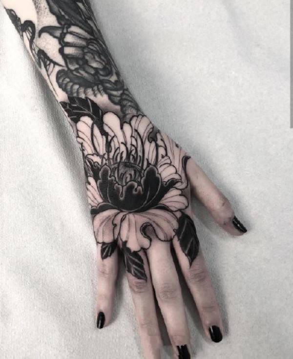 手背图案纹身-9张帅气的大花手背纹身图案作品