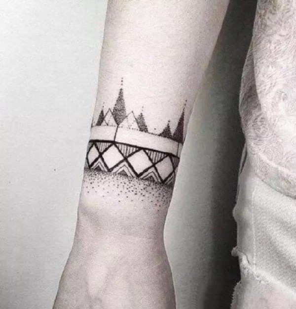小臂手腕处很有民族风情的手环臂环纹身图案