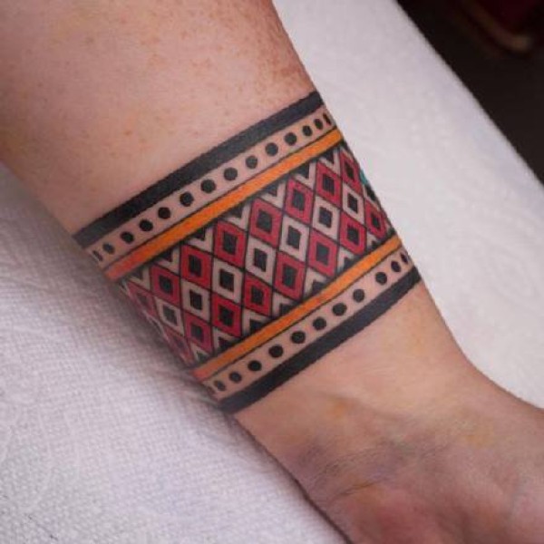 小臂手腕处很有民族风情的手环臂环纹身图案