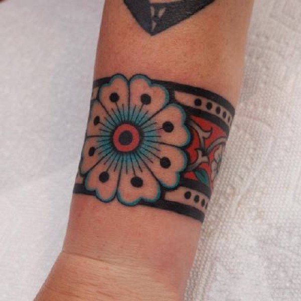 小臂手腕处很有民族风情的手环臂环纹身图案