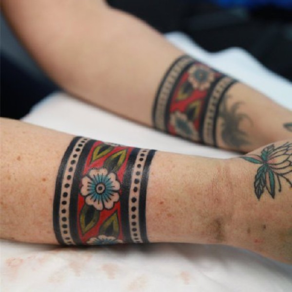 小臂手腕处很有民族风情的手环臂环纹身图案