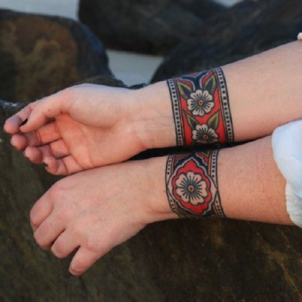 小臂手腕处很有民族风情的手环臂环纹身图案