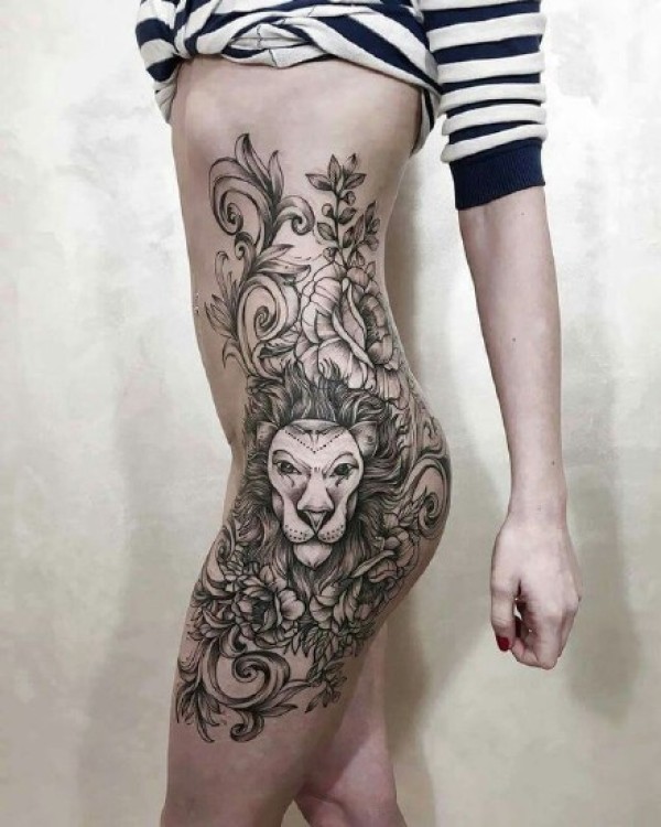 腿部纹身女 9组女性大腿侧部性感纹身作品图