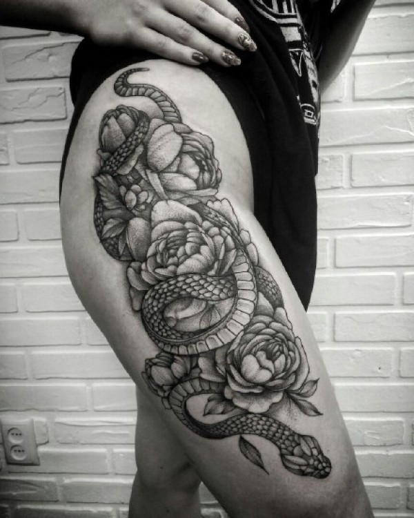 腿部纹身女 9组女性大腿侧部性感纹身作品图