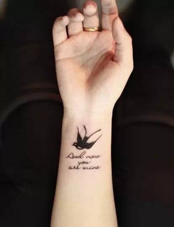 心形纹身情侣 情侣手腕上黑色的心形纹身图片