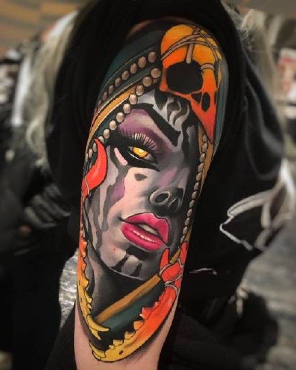 女郎纹身图 超漂亮的9张newschool彩色女郎纹身欣赏