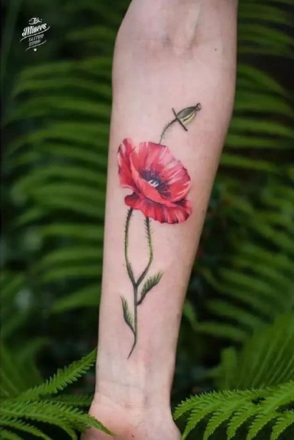 罂粟花纹身图--几张红色艳丽的唯美罂粟花纹身图案作品