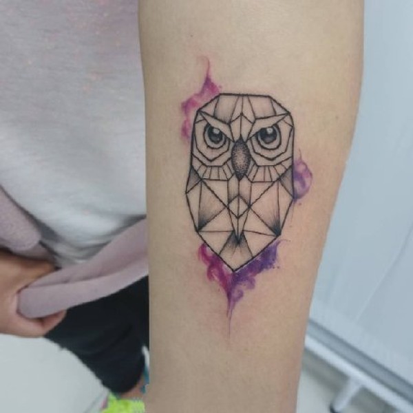 女性大腿上的哈利波特的灵感猫头鹰纹身图案