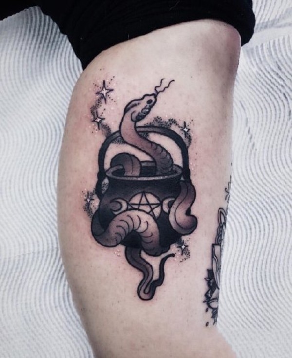 魔杖等魔法主题的黑灰school风格纹身图片