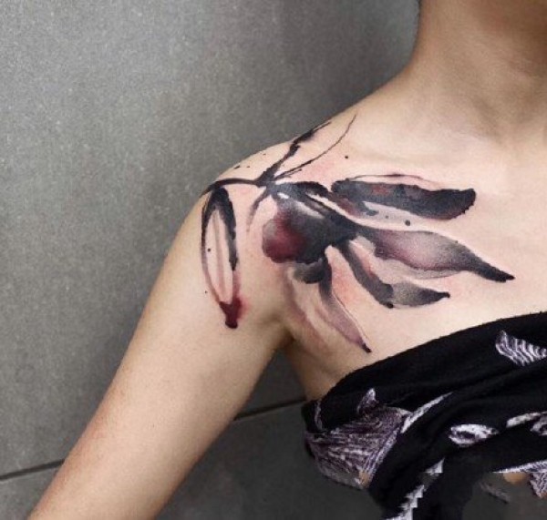 水墨画纹身 肩背部的一组中国风水墨纹身图片