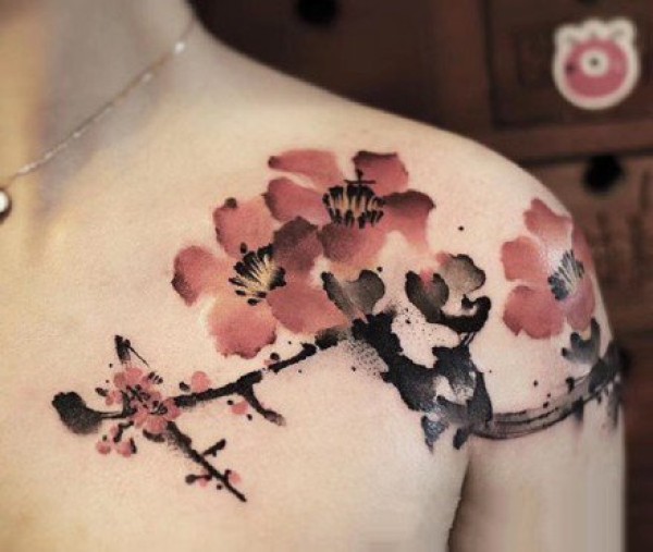水墨画纹身 肩背部的一组中国风水墨纹身图片