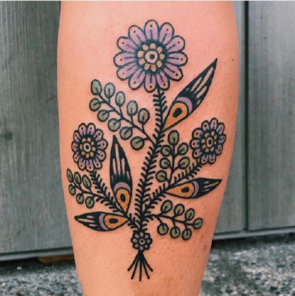 纹身oldschool花朵 复古school风格的9张花卉纹身图片