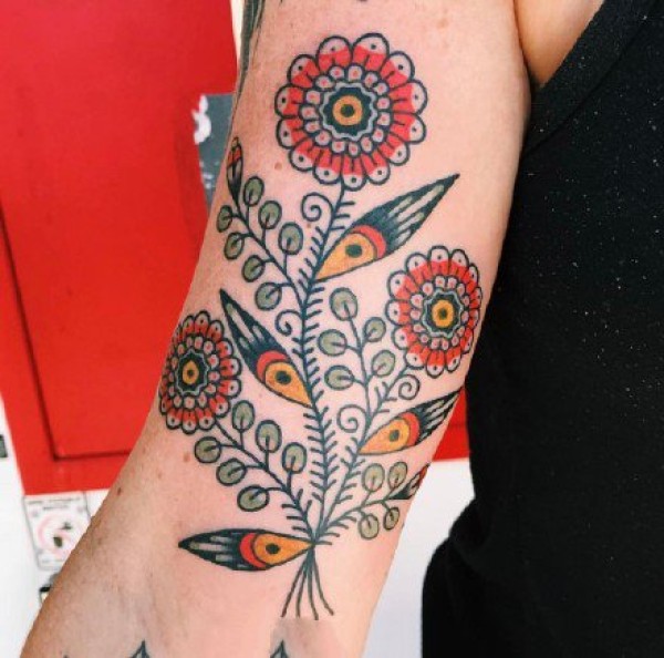纹身oldschool花朵 复古school风格的9张花卉纹身图片