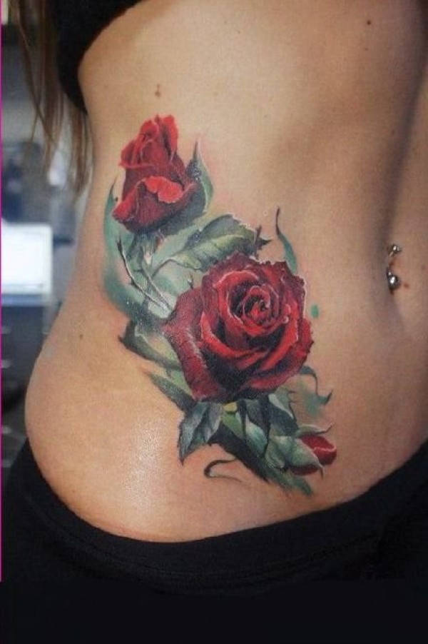 男生侧腰精美很酷的骷髅与玫瑰纹身图案_玫瑰花纹身图案大全_纹身图吧