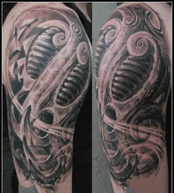 欧美花臂纹身_22张霸气黑灰欧美大黑花臂纹身图案作品图片
