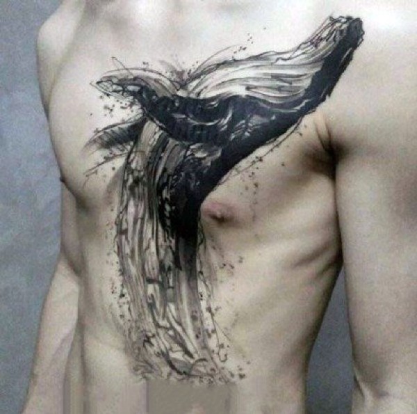 9张漂亮的水彩色鲸鱼纹身图案作品