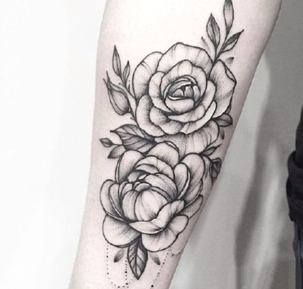 大臂素花纹身 9款女士的大臂黑灰花朵植物纹身图案