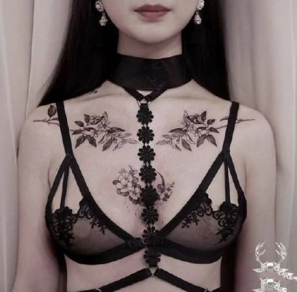 性感肩花纹身 适合女生的锁骨肩部花朵纹身图片