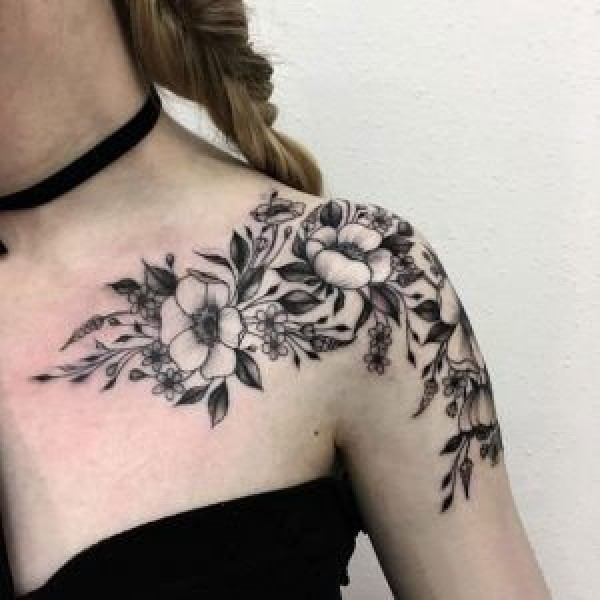 性感肩花纹身 适合女生的锁骨肩部花朵纹身图片