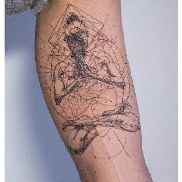 点线纹身 设计感极强的写实与抽象结合的纹身图片