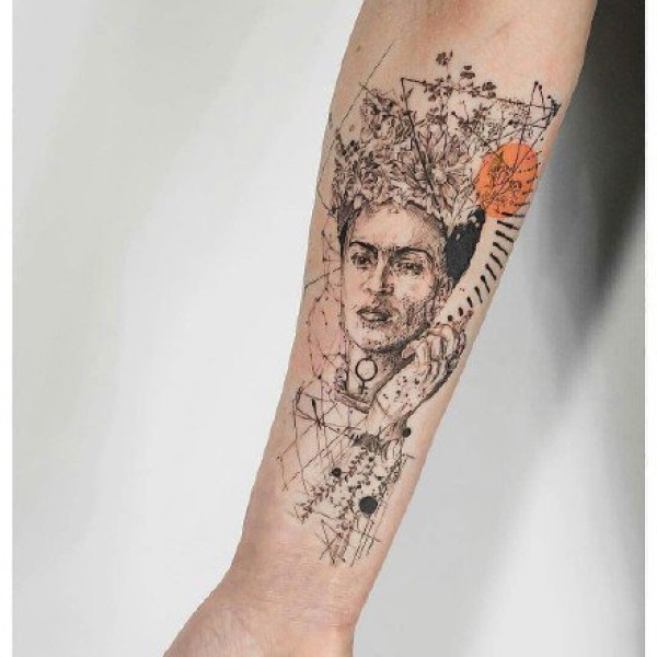 点线纹身 设计感极强的写实与抽象结合的纹身图片