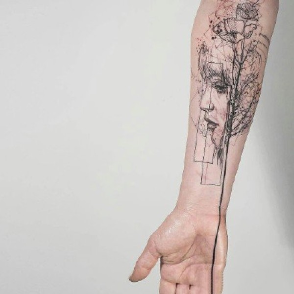 点线纹身 设计感极强的写实与抽象结合的纹身图片