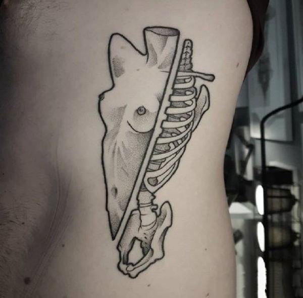 创意骨骼纹身图_10张男性黑灰点刺创意骨骼纹身图案作品
