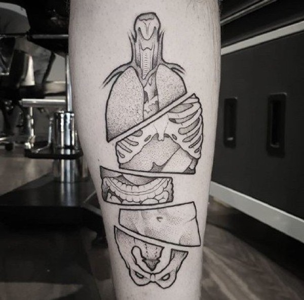 创意骨骼纹身图_10张男性黑灰点刺创意骨骼纹身图案作品