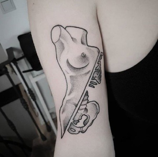 创意骨骼纹身图_10张男性黑灰点刺创意骨骼纹身图案作品