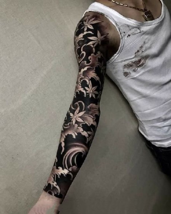 纹身大黑臂 9组深黑色的男士大黑臂纹身图案